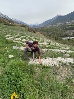 Les Raisins Suspendus Village: Embruns Appellation: 1.5 ha Vin de France (Hautes Alpes) Grower: Angela Weidner and Maxime Aerts In 2020, Angela Weidner and Maxime Aerts, having recently assembled in 2018 three hectares of vines in the forested hills near the village of Saint-Alexandre in the Gard region of the Southern Rhone, began to explore a new terroir, the Hautes-Alpes, to create a second domaine, Les Raisins Suspendus. For mountain lovers Maxime and Angela, it was above all the climatic conditions and geological profile of the region that won them over, where they could create wines that reflect their personality. They embarked on the challenge to restore plots of vines, most of which are centuries old and abandoned by their owners, life-long Hautes-Alpes residents who until recently cultivated their plots to make their own wine. While trying to identify all the grape varieties present in these planted vines, Maxime and Angela are also working on more recent plots, with some rather surprising mountain Chardonnays and Merlots. Nestled between 800 and 1000 metres above sea level, on hillsides overlooking the Durance, these plots are made up of mainly limestone soils, composed of marl and alluvium inherited from the last great glaciation. Considering the vineyards as a fully-fledged, living ecosystem, they work organically, making grass their ally, harvesting the grapes by hand, and making wine without artifice. In 2022 and 2023, they planted 1.5 hectares of vines in Embrun on the slopes of the Durance with a selection of native grape varieties, including Mollard, or those from neighboring Alpine regions, such as Petite Arvine and Mondeuse Blanche. Embruns des Cimes Embruns de Cimes is a light red wine, mineral and fruity from grapes grown in schist soils. It is a mix of 32 old grapes varieties, ranging from 70 to 100 years old, including Mollard, Espanenc, Grand Noir de la Calmette, Barbaroux, Grec Rose, Alicante and many more. The vines are planted at extremely high altitudes, 900 meters on average. Yields are very low at 12hl/Ha. Half of the grapes are direct pressed and half remain whole cluster. A one week maceration in stainless steel retains the minerality and acidity typical to the alpine climate. The result is an engaging and refreshing wine at just 11% vol.